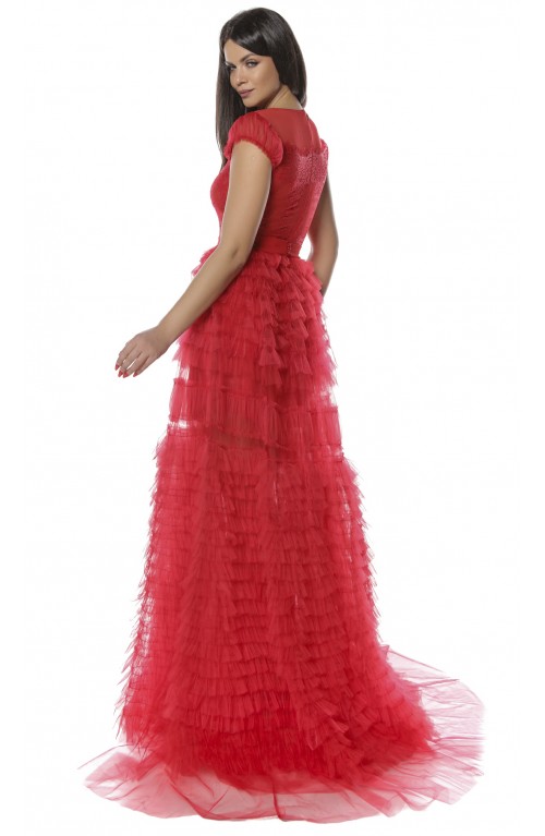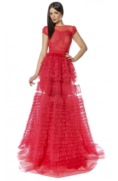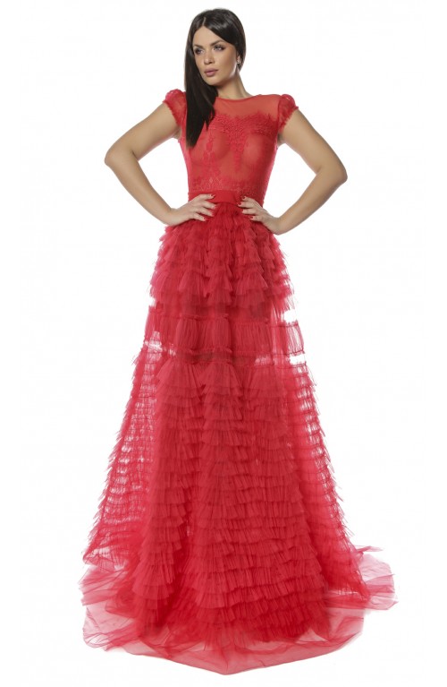 Rochie de seara speciala pentru evenimentele ce urmeaza in acest sezon. Vei iesi in evidenta purtand creatia Zova realizata din tulle de vise, corset cu cupe si aplicatii manuale