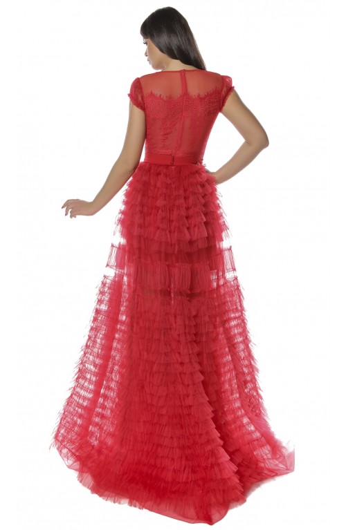 Fusta din tulle cu aplicatii si volane din tulle incretit