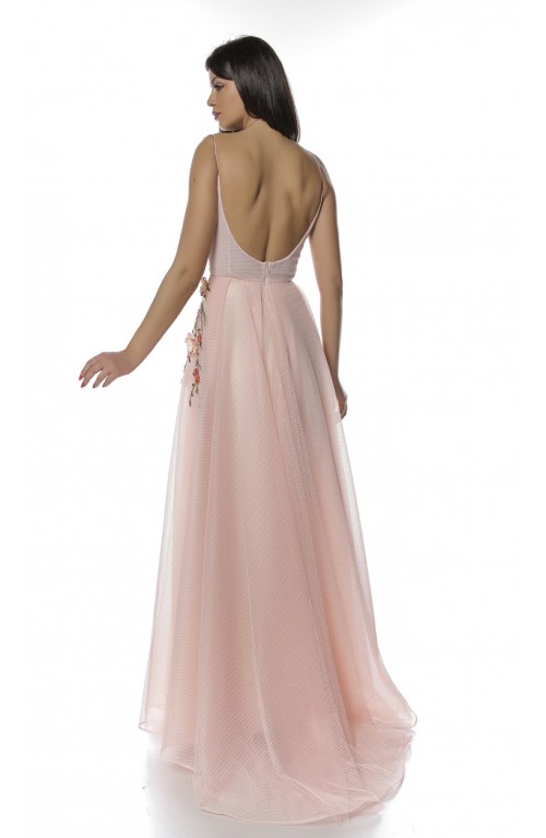 Rochie de seara speciala pentru evenimentele ce urmeaza in acest sezon. Vei iesi in evidenta purtand creatia Zova realizata din tulle de vise, corset cu cupe si aplicatii manuale