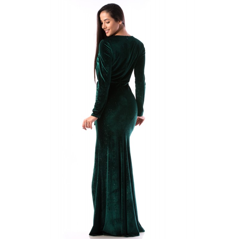Rochie din catifea cu umeri bufanti si maneci din picouri. Centura este optionala si are pret separat. Pretul afisat nu include centura.