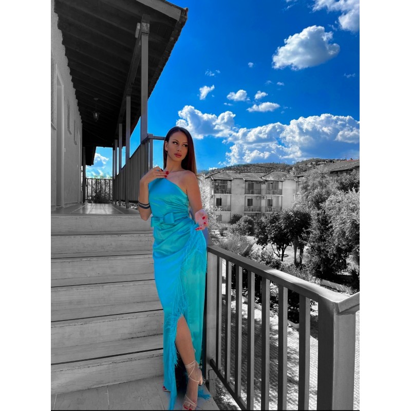 Rochie Blue Dream - Rochie de seara lunga din matase satinata