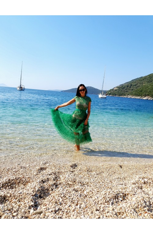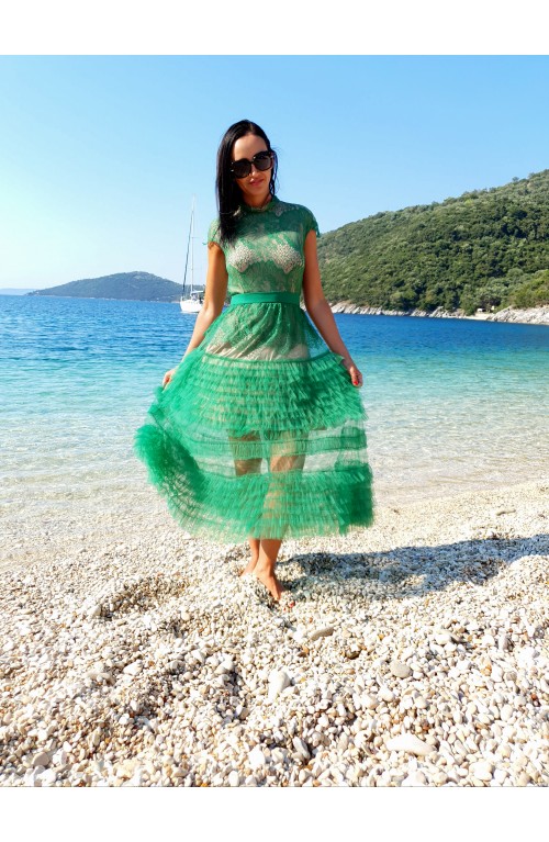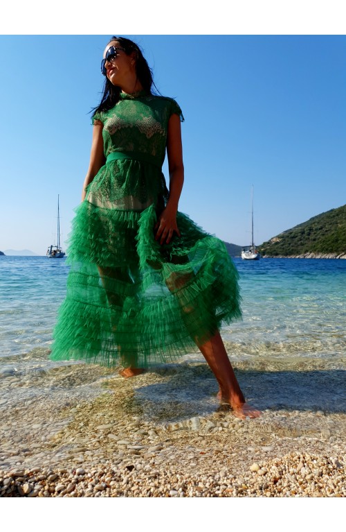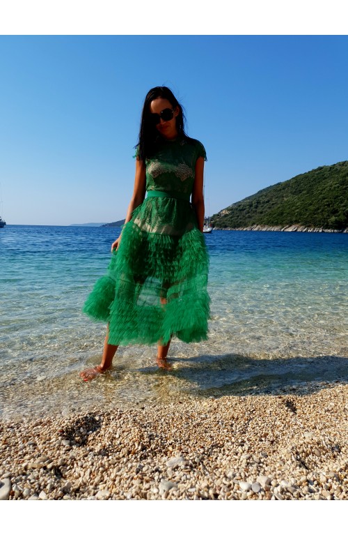Rochie de seara speciala pentru evenimentele ce urmeaza in acest sezon. Vei iesi in evidenta purtand creatia Zova realizata din tulle de vise, corset cu cupe si aplicatii manuale