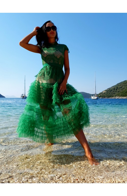 Rochie lunga cu aplicatii din broderie, pietre si  mai multe straturi din tulle. Vrei sa te simti ca o adevarata printesa? Atunci alege Rochia Bella, cat mai putine accesorii si  cu atitudinea potrivita nu vei fi doar o printesa la petrecere, ci vei putea cuceri lumea!