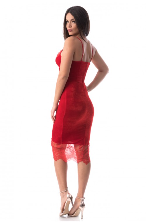 Rochia Seretine este realizata din catifea, este elastica si are insertii de dantela.