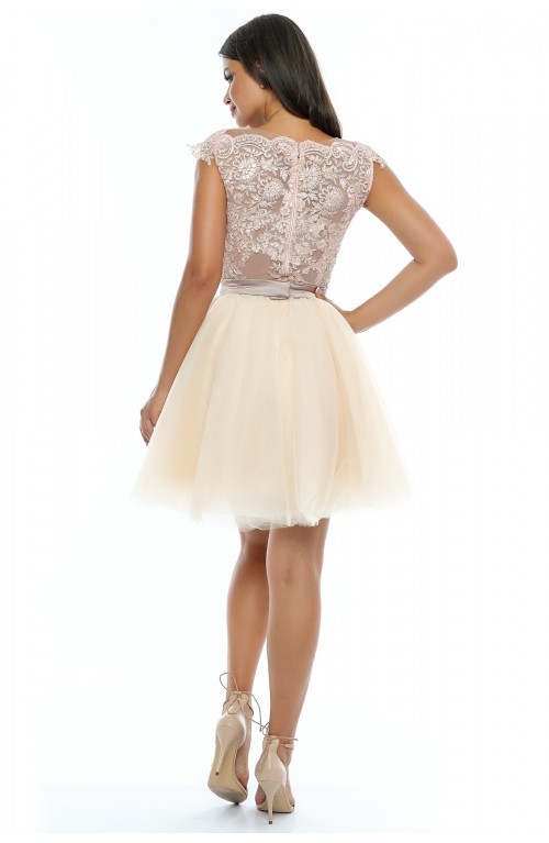 Rochie de seara speciala pentru evenimentele ce urmeaza in acest sezon. Vei iesi in evidenta purtand creatia Zova realizata din tulle de vise, corset cu cupe si aplicatii manuale
