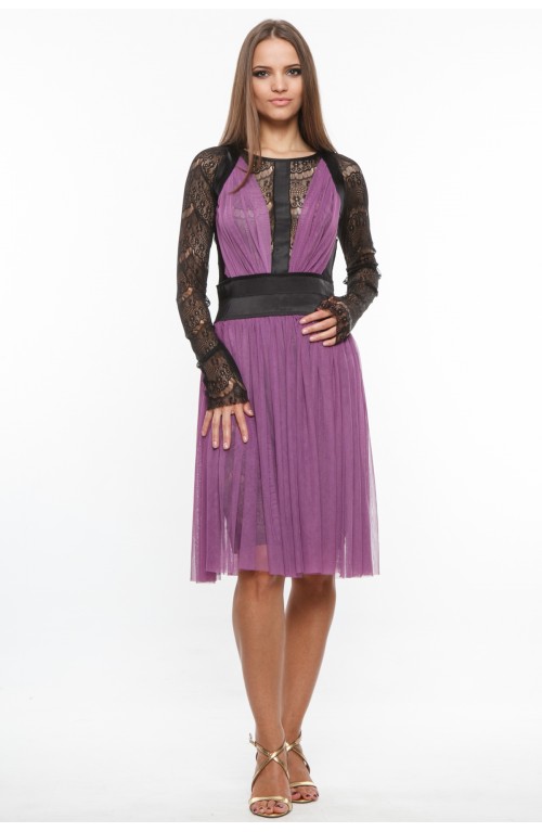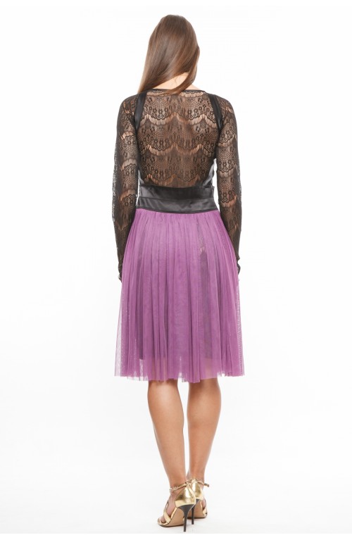 Rochie MMcocktail fabricata din dantela cu fronseuri din tull.